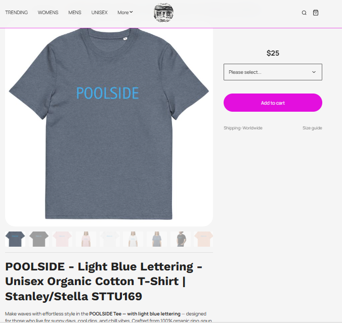 - Light blue “POOLSIDE” lettering pops with sunny, summer vibes