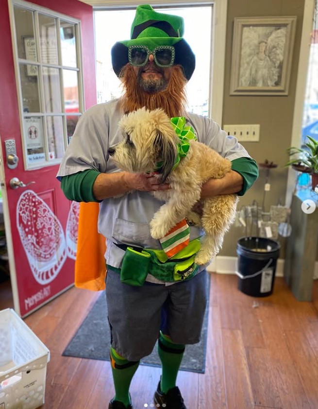 Our favorite local postman "Patrick" is even in the spirit of shamrock season by wearing his green as he stops by to make his deliveries. Folks stop in after grabbing coffee next door, parents pop by after a parade with kids in tow, and couples on weekend strolls can’t resist peeking in to see what’s fresh. And trust us, it’s always fresh.