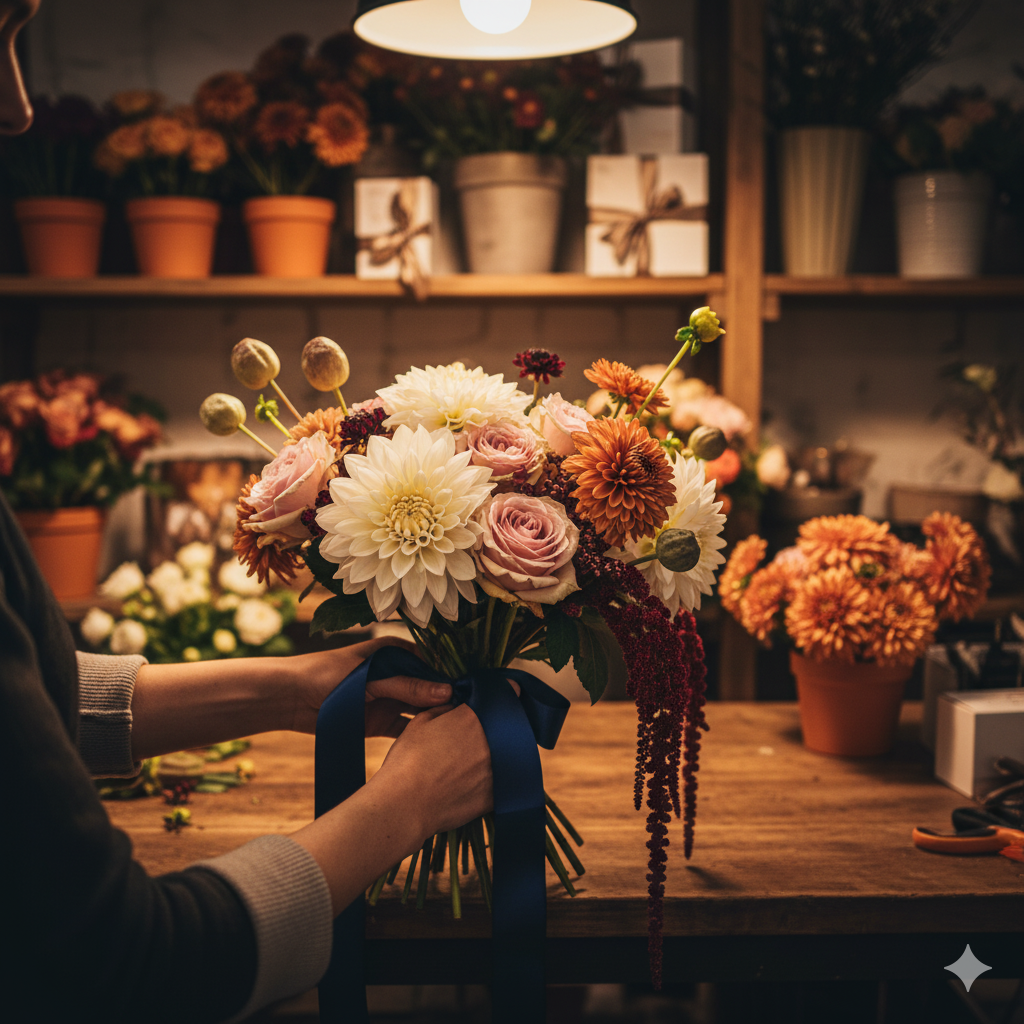 Pro Tip: Keep arrangements natural and slightly asymmetrical — fall flowers look their best when they feel free and organic, not too “perfectly” arranged.